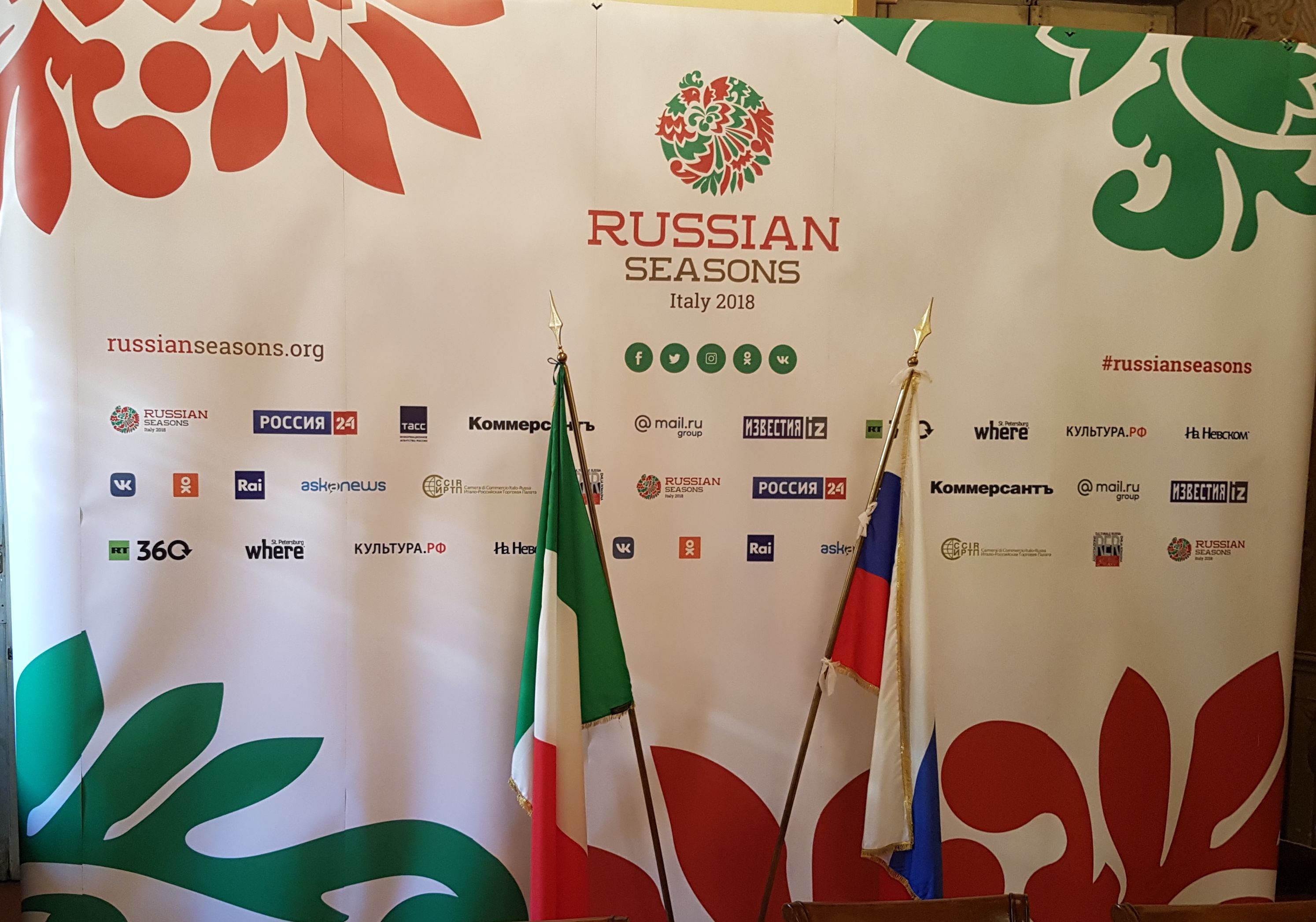 All’evento hanno partecipato il Ministro della Cultura della Federazione Russa Vladimir Rostislavovich Medinsky, Ministro per i Beni e le Attività Culturali della Repubblica Italiana Alberto Bonisoli, Presidente dell’Accademia Nazionale di Santa Cecilia Michele Dall’Ongaro, direttore principale dell’Orchestra Sinfonica del Bol’shoi di P.I. Čajkovskij, artista popolare dell’URSS Vladimir Ivanovich Fedoseev, ambasciatore straordinario e plenipotenziario della Federazione russa nella Repubblica italiana e nella Repubblica di San Marino, in sostituzione Sergey Sergeyevich Razov. Il seguito internazionale di questa iniziativa avverrà in Germania e in Russia il 7 gennaio 2019. Alle 20, 00 si svolgerà la cerimonia d’apertura del progetto culturale internazionale «Le Stagioni Russe» alla Filarmonica di Berlino e alle 14:00, stessa location, avrà luogo la conferenza stampa dedicata all’apertura del progetto nella Repubblica Tedesca. Il seguito italiano, comunque, è di grande interesse culturale. Due importanti mostre saranno ancora visibili in particolare per i romani.