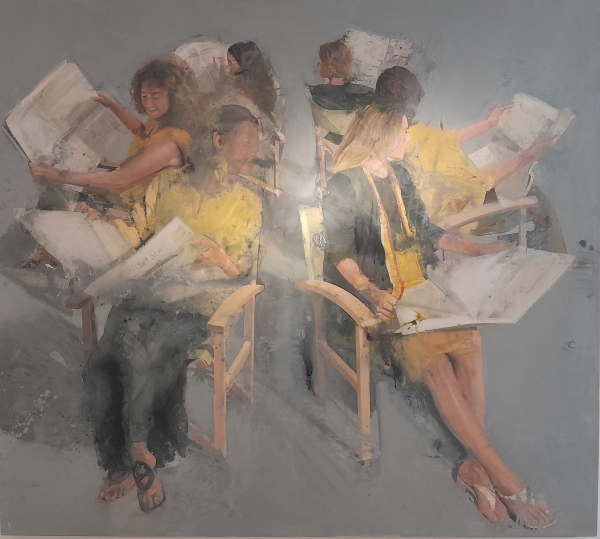 Completa la presentazione il comunicato stampa: “Un’indagine sullo stato attuale della produzione pittorica in Italia con un percorso in più tappe, attraverso il dialogo tra le opere della Collezione Elena e Claudio Cerasi e quelle di artisti figurativi contemporanei.” Questa rassegna non è solo un dialogo tra gli artisti contemporanei e le opere realizzate nel recente passato dai loro colleghi, in prevalenza di scuola romana. Il “file rouge” che da sempre unisce passato e presente nelle arti figurative è stato l’interprete dei sentimenti nobili dell’animo umano in ogni epoca e questa mostra, curata dal critico d’arte Gianluca Marziani e allestita senza soluzione di continuità nelle sale che ospitano la collezione Cerasi, vuole offrire una chiave di lettura a questo “file rouge”.