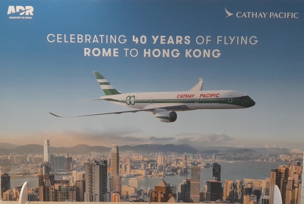 Da comunicato stampa: “Adrien Ng, Area Head Southern Europe di Cathay Pacific, ha dichiarato: «Siamo orgogliosi di celebrare in Italia un doppio traguardo per Cathay Pacific: gli 80 anni di attività nel connettere persone e luoghi e il 40° anniversario del nostro primo volo dall’Italia a Hong Kong, inaugurato proprio a Roma. L’Italia rimane per noi un mercato importante, come dimostra il recente aumento delle frequenze in partenza da Roma. Questo anniversario testimonia il nostro impegno di lunga data nel collegare l’Italia con Hong Kong e la regione dell’Asia-Pacifico, rispondendo alla crescente domanda e ampliando le opportunità di viaggio sia per i passeggeri italiani che per i viaggiatori asiatici desiderosi di scoprire il patrimonio culturale italiano.»